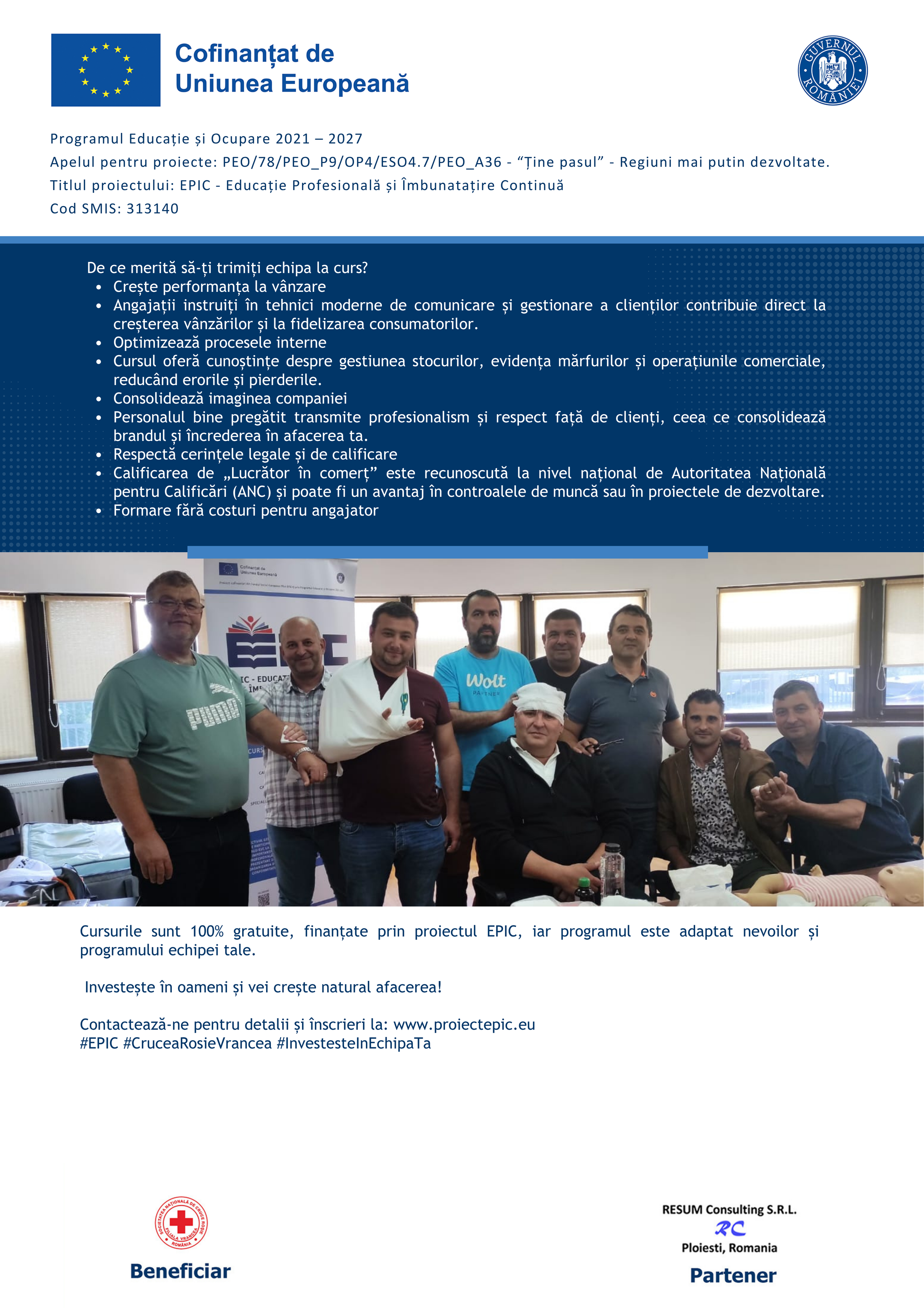 Calificare GRATUITĂ pentru angajați în meseria de lucrător în comerț