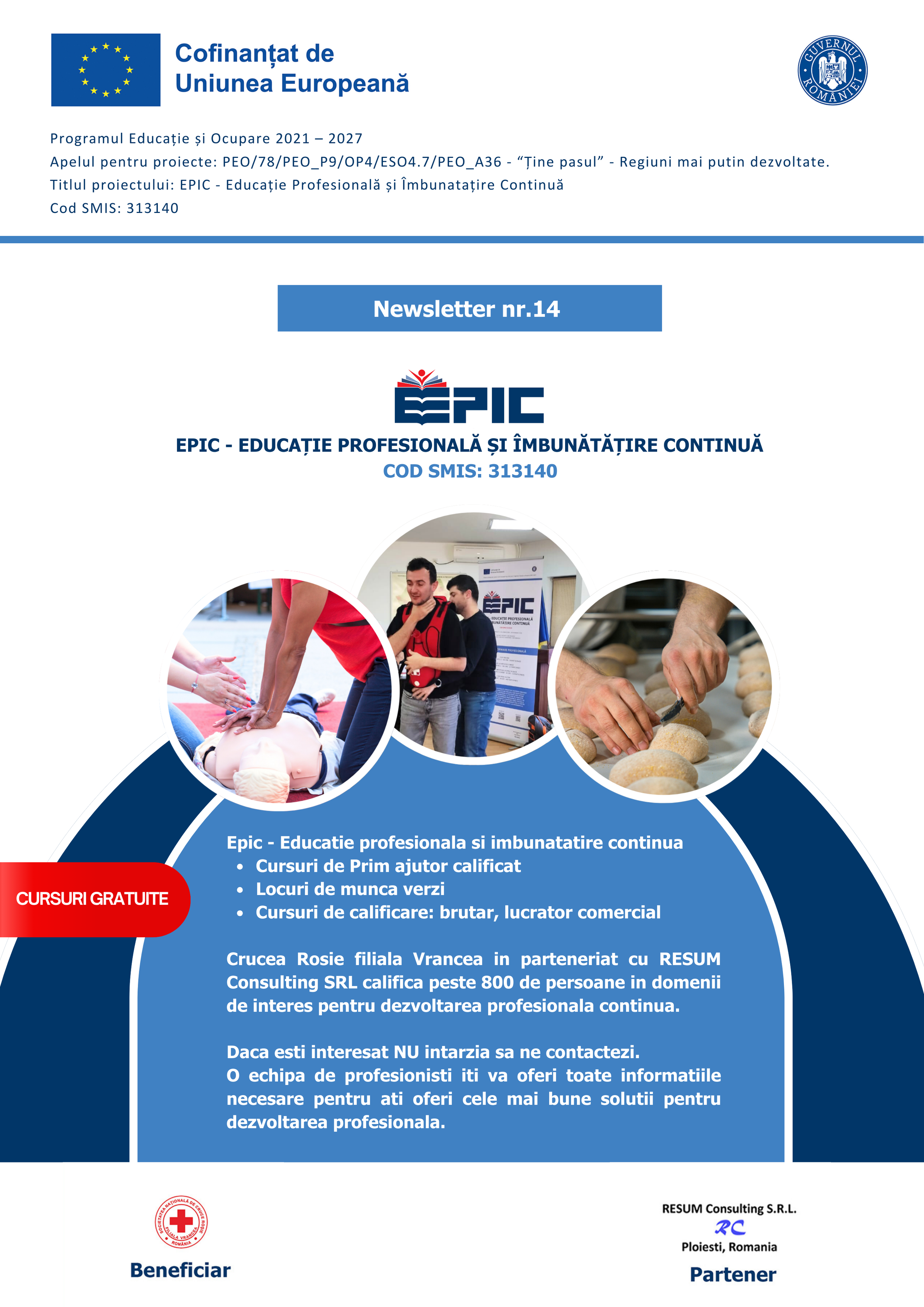Crucea Rosie filiala Vrancea in parteneriat cu RESUM Consulting SRL califica peste 800 de persoane in domenii de interes pentru dezvoltarea profesionala continua.